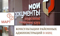 Консультации населения специалистами районных администраций в МФЦ – график на март