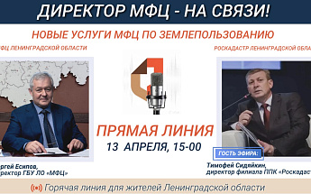 13 апреля жителей региона приглашают на горячую линию МФЦ и ППК «Роскадастр» Ленинградской области, посвященную землепользованию и землеустройству.