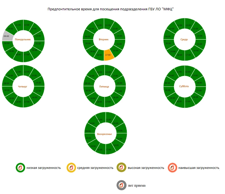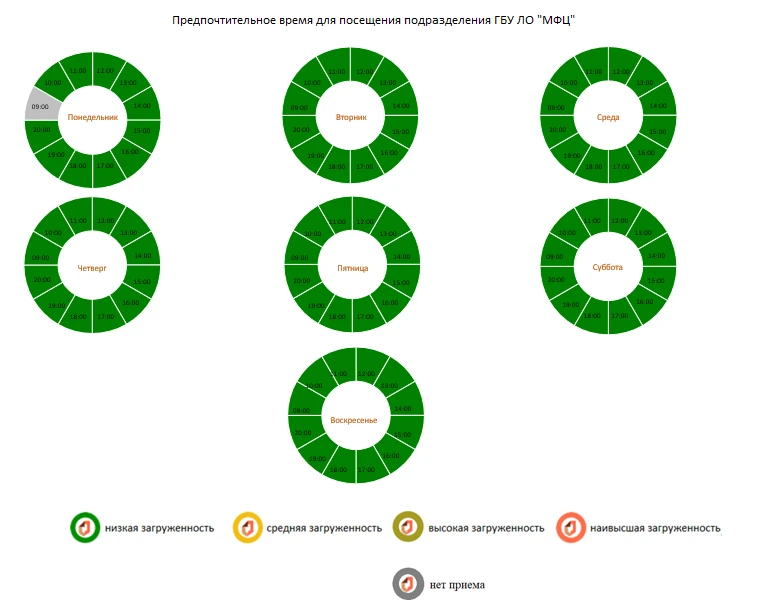 График работы: ср c 11:00 до 20:00; пт c 09:00 до 18:00 перерыв с 14:00 до 15:00; сб c 09:00 до 13:00 . Время приема услуг МВД: пт с 09:00 до 17:00